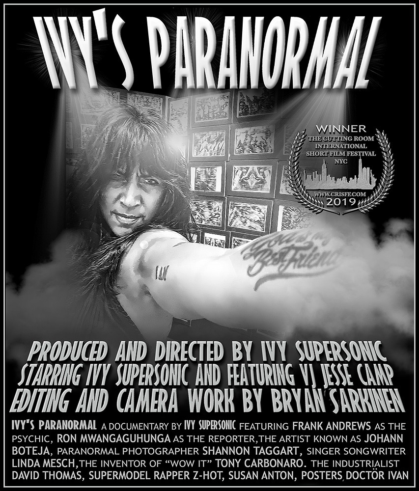 As Ivy’s life would seem to have it, she has built on what she created once again, and morphed one piece into the next when she premiered her new documentary, Ivy’s Paranormal.  The film closely takes a look at her paintings and discusses the images appearing in her photographs which seem to have messages from beyond.  The film is produced by documentary cinematographer Bryan Sarkinen and made its official premiere at Great Neck’s Squire Theater on November 20, 2019.  The film first showed at The Cutting Room International Short Film Festival October 19, 2019 winning Best Short Documentary.
