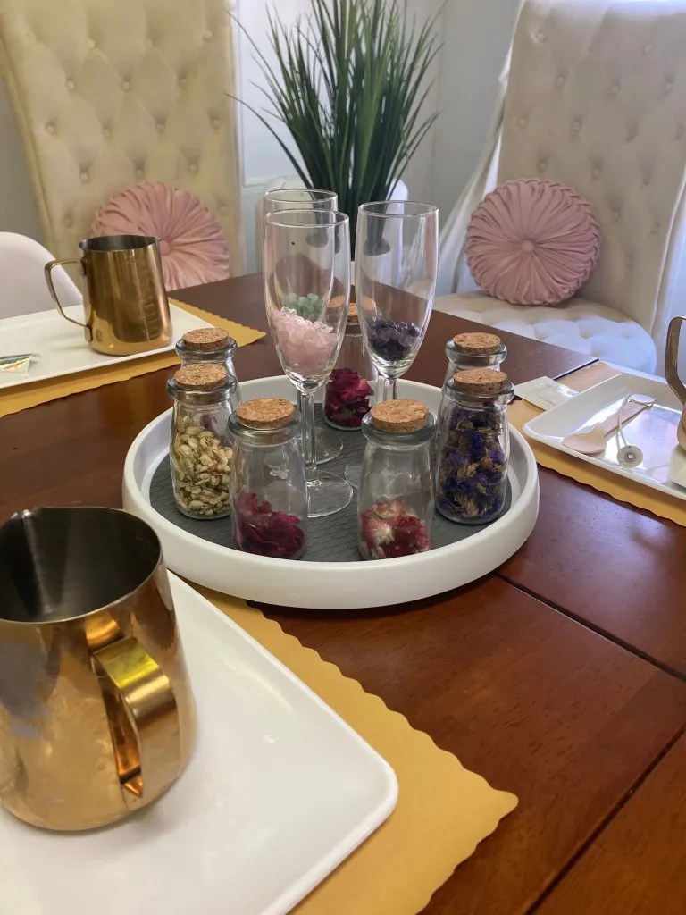 A standard session is $50 for the lesson, vessel, everything to make the candle including soy wax, fragrances and a choice of three different healing crystals along with dried flowers to top it off.